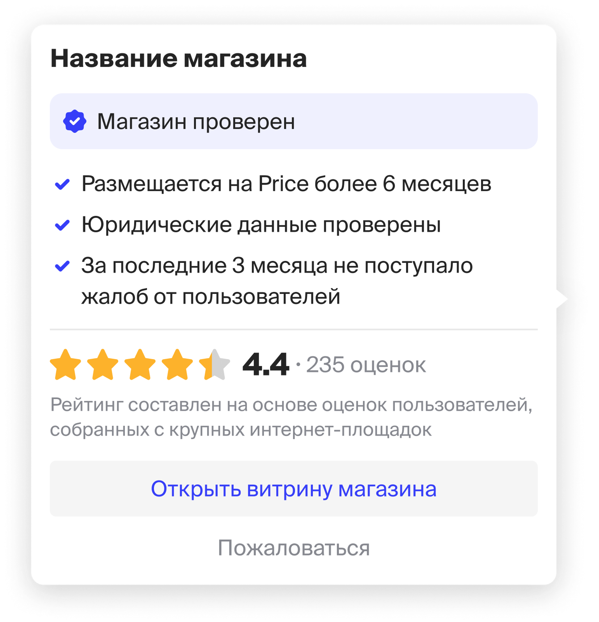 Как статус «Магазин проверен» отображается на сайте Price.ru?