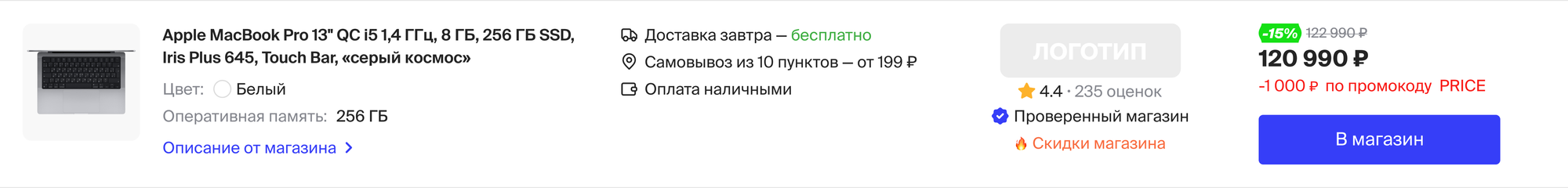 Товар, представленный на Price.ru, должен быть в наличие на сайте интернет-магазина партнера.